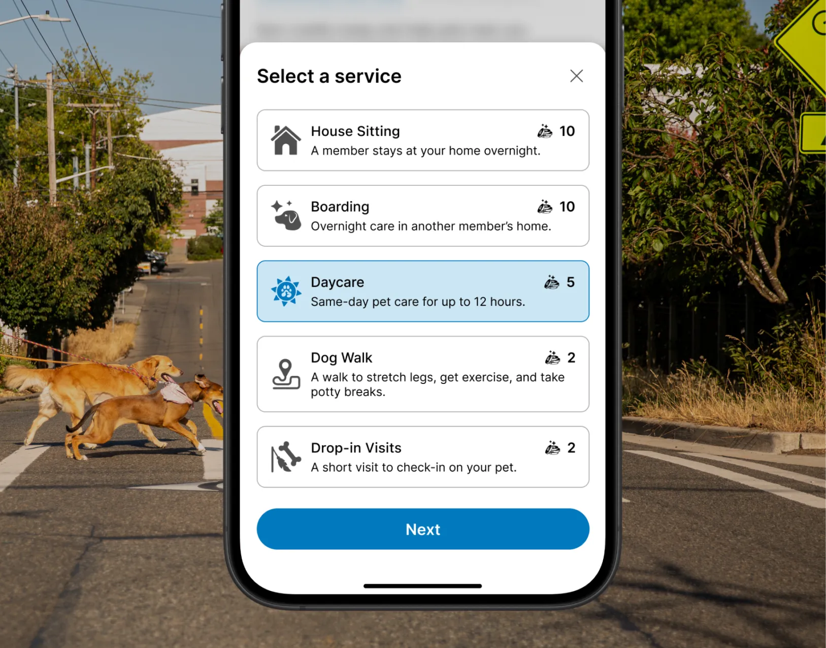Redeem the credits you’ve earned (or purchased) to book care for your own pets from other background-checked members.